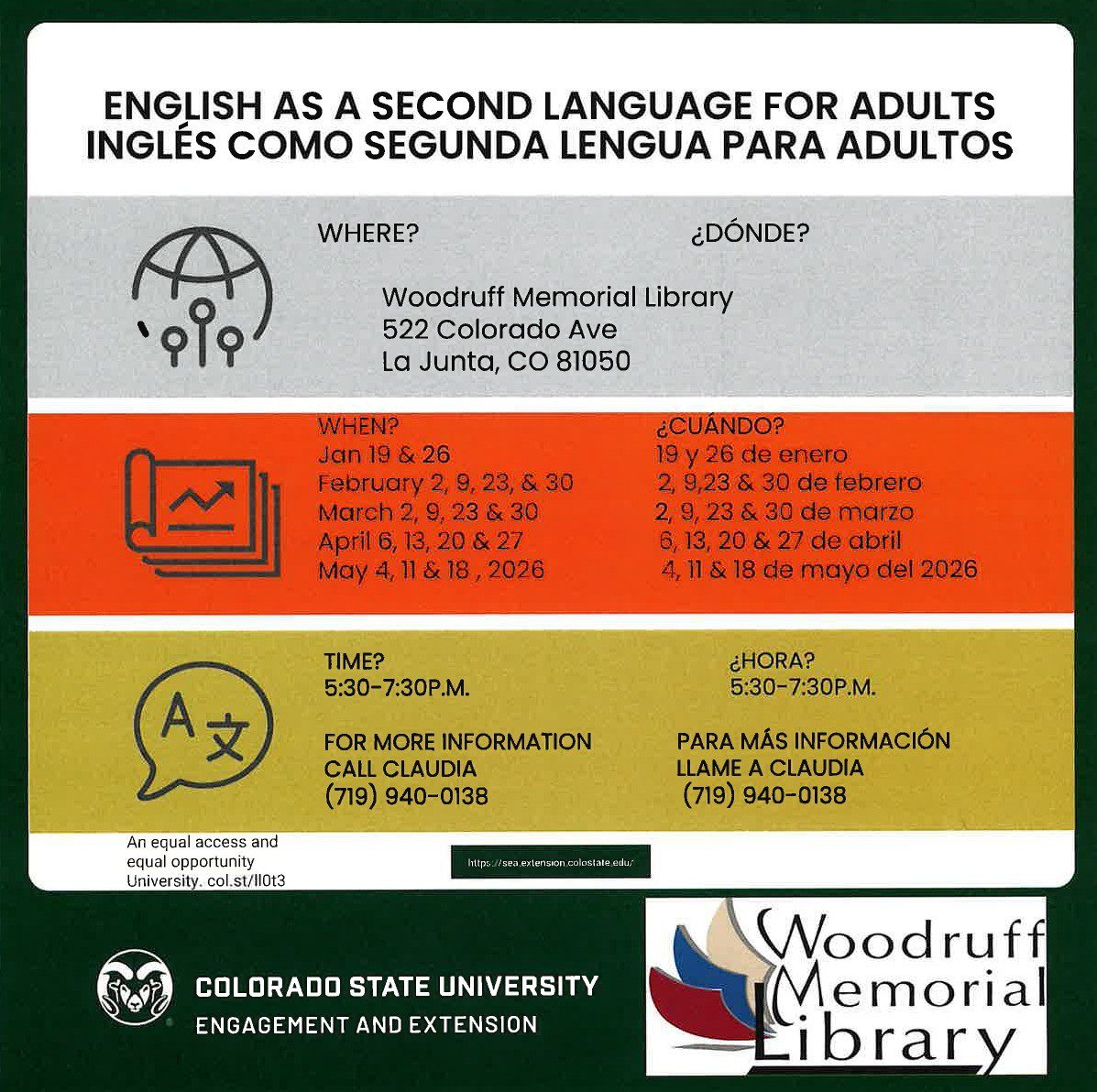 MetaSlide February 20, 2026 by kristinerios https://lajunta.colibraries.org/wp-content/uploads/2026/01/ESL-Classes-La-Junta-002.jpg https://lajunta.colibraries.org/wp-content/uploads/2025/12/Woodruff-VPC-2026-FINAL_page-0001-1.jpg Read Squaredhttps://wml.readsquared.com/ https://woodruffco.universalclass.com/barcode-login.htm?enter+code https://imaginationlibrary.com/check-availability/