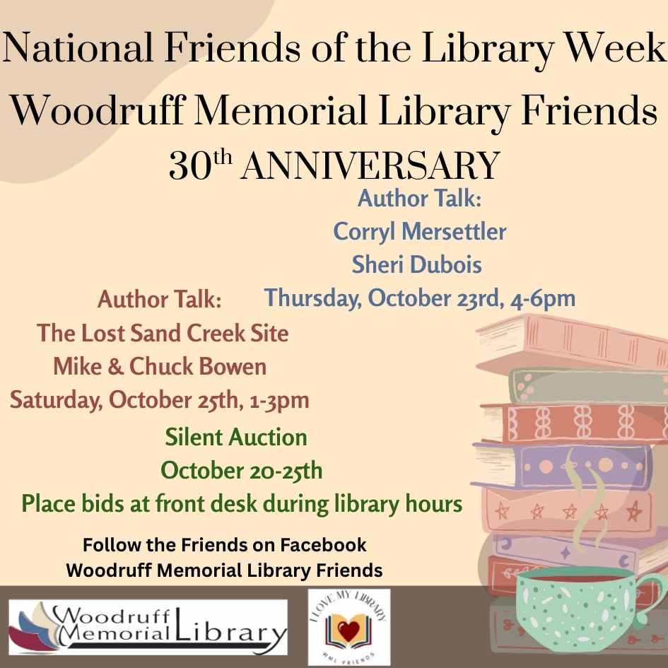To support the Woodruff Memorial Library through monetary donations, volunteering and advocacy.